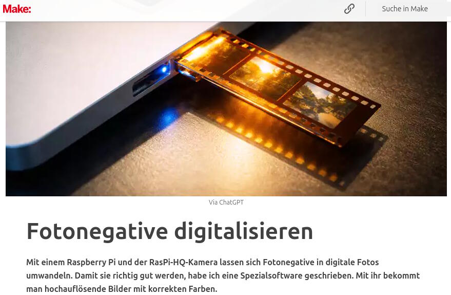 Was schon länger auf dem Plan stand, ist das Thema Digitalisierung von analogen Fotos und Videos. Und siehe da - ein aktueller Beitrag: Foto-Negative digitalisieren mit einem Raspberry PI: