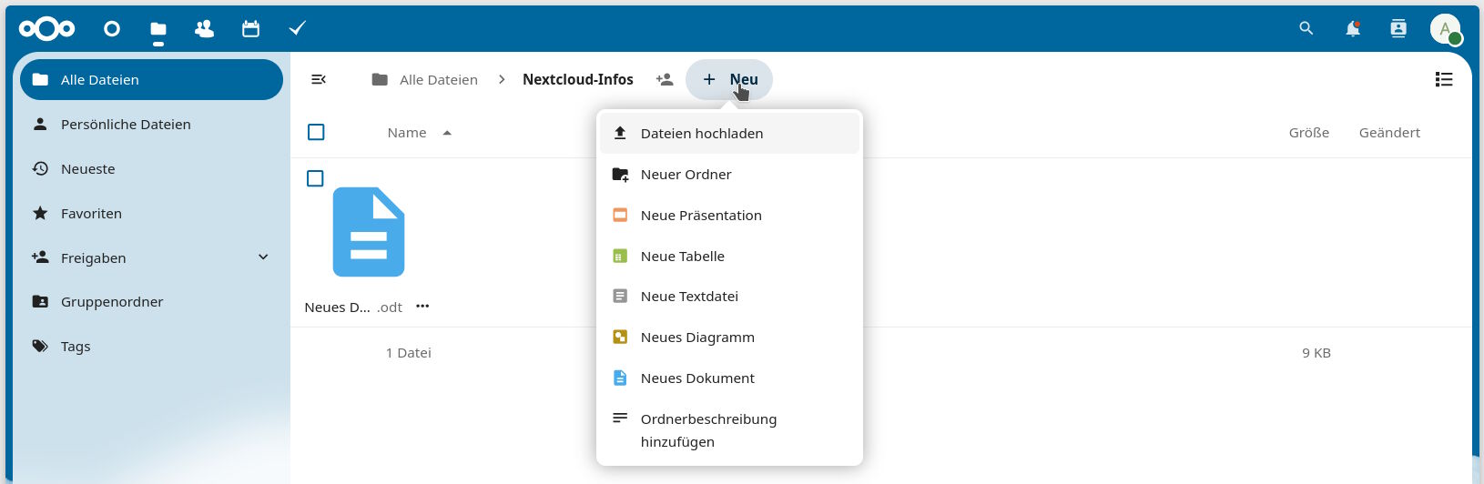Neue Präsentation .odp | Neue Tabelle .ods | Neue Textdatei .md | Neues Diagramm .odg | Neues Dokument .odt
